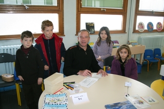 A partir de l’Opération ‘Lire en Fête’ et de l’exposition ‘Vignettes en miettes’, les enfants des écoles de Sciez ont travaillé sur le thème de la BD, Kaya auteur local créateur d’une première Bd s’est particulièrement investit pendant plusieurs semaines auprès des enfants des écoles pour partager et transmettre sa passion de la bande dessinée. Sept classes ont travaillé régulièrement avec cet auteur, les enfants ont ainsi découvert les différentes phases de la réalisation d’une bande dessinée : le scénario, la création des dessins, le coloriage, etc… Une fois ces règles de bases comprises, les enfants ont réalisé de magnifiques  BD en fonction de leur style et de  leur goût. Samedi 6 décembre, en présence de l’auteur, des enfants, parents, responsables du Foyer et élus locaux, avait lieu l’inauguration de cette exposition  actuellement présentée au public à la bibliothèque du Foyer.